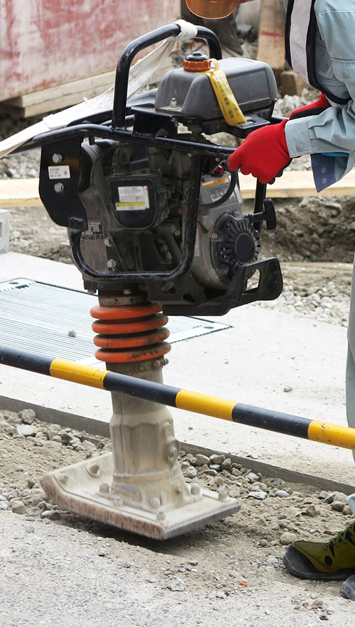 歩道舗装や車道舗装、遊歩道の舗装、歩道の切り下げ工事、道路の維持補修工事などと幅広くご対応しております。